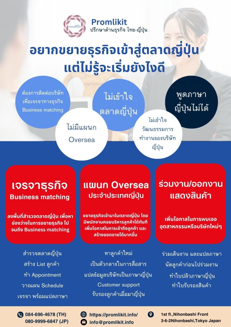・ตัวกลางในการประสานงานนำบริษัทไทยเข้าสู่ตลาดในญี่ปุ่น
